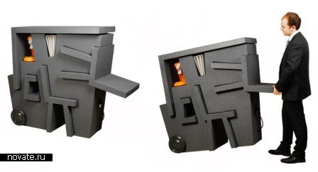 Kruikantoor. Компактная и легкая мебель для офисаЕсли к малогабаритным квартирам, в которые помещается только мебель для кукольного домика, мы уже привыкли, и даже видели определенное количество дизайнерских проектов модульной мебели для такого жилья, то малогабаритный офис, для которого также нужны складные столы и стулья, нельзя назвать обычным и привычным. По крайней мере, если речь идет о солидной фирме. Однако кое-кто из зарубежных дизайнеров, в частности, Тим Винке (Tim Vinke), уверен, что и такое бывает, поэтому и спроектировал складную офисную мебель Kruikantoor. На всякий случай.Предположим, что речь идет не о временной конторе "Рога и копыта", а действительно о солидной фирме, которая в силу определенных причин вынуждена ютиться в маленькой комнатке. Ну, или же офис работает в военном режиме, и сотрудники должны быть наготове, чтобы по первому же сигналу собрать вещи и ретироваться с территории. Такой компактный набор из материала, напоминающего пенопласт, будет как нельзя кстати. Kruikantoor. Компактная и легкая мебель для офиса Kruikantoor. Компактная и легкая мебель для офисаНабор мебели Kruikantoor выглядит как асимметричный "кубик", который состоит из стола, двух стульев и системы полочек для хранения бумаг. В этот же кубик мебель при необходимости складывается и отодвигается к стене, или грузится в транспорт. Kruikantoor. Компактная и легкая мебель для офиса Kruikantoor. Компактная и легкая мебель для офисаЛегкий и прочный,Kruikantoor может пригодиться не только для постоянно переезжающего офиса, но и для мероприятий, которые проводятся на выезде, преимущественно свежем воздухе, поскольку стирофом, из которого, собственно, мебель и сделана, не требует особого ухода и запросто отмывается от пыли, грязи и пролитых напитков. Подробности о проекте - на сайте .